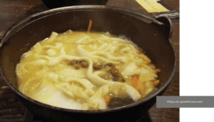 ↑熱々の鍋で運ばれてくるホウトウ。日中サイクリングしてよかった。。無事完食しました。